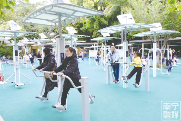 南宁市融媒体中心—南宁晚报讯(记者 凌剑伊 通讯员 姚雲)近日,经常在金花茶公园游玩健身的市民欣喜地发现,在公园东门入口处右侧全民健身中心的健身器材焕新升级,改造之后的大健身区成为公园一道亮丽的风景线。