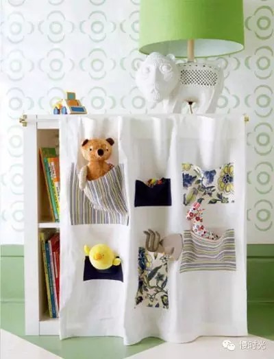 现成的较长的布帘剪成合适的长度,挂在书架前挡灰尘。别忘记在帘子正面缝些彩色布口袋,充满乐趣。小小的布帘,看似普通,却解决了家里的许多难题。敞开的鬼子都可以迅速被封闭起来,似乎着你微笑。