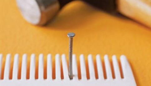 4.用梳子卡住钉子,就不用担心锤子会敲到手了