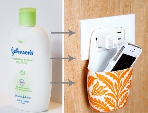 6.洗发水瓶子什么的剪一剪就成了一个充电支架