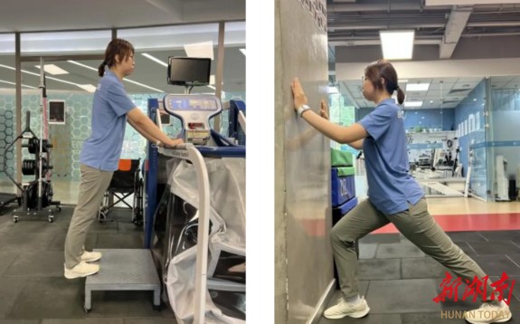 ●做法:找台阶或稳固的高台,双手扶扶手保持平衡;双脚前1/3踩在台上,后侧悬空;缓慢将脚跟下落到最低点(感受小腿拉伸),再慢速提至最高点(感受小腿收缩),重复动作。