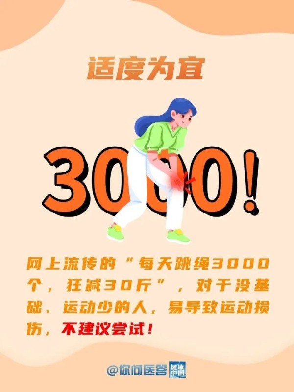 注意事项1.练习跳绳,尽量选择木地板或塑胶地面,或在硬地上铺软垫进行练习,避免大脑受到震荡和对骨骼关节造成损伤。穿一双鞋底较软,缓冲性能良好的运动鞋也很重要。2.体重超重人群(BMI指数大于24),可尝试其它运动类型进行锻炼,或先通过饮食控制和其它方式降低体重后进行跳绳运动。较大体重的人,在跳跃时下肢承受负荷较普通人更大,如果运动基础不足,身体稳定性和平衡能力较差,容易造成下肢不适和损伤发生。3.有下肢骨关节疾病,静脉曲张或特殊疾病,如:心脏病,高血压等,不要贸然跳绳,应咨询医生后开展运动锻炼活动。网址:全民健康生活方式宣传月:想瘦?这是最简单的方法! https://www.yuejiaxmz.com/news/view/1383601