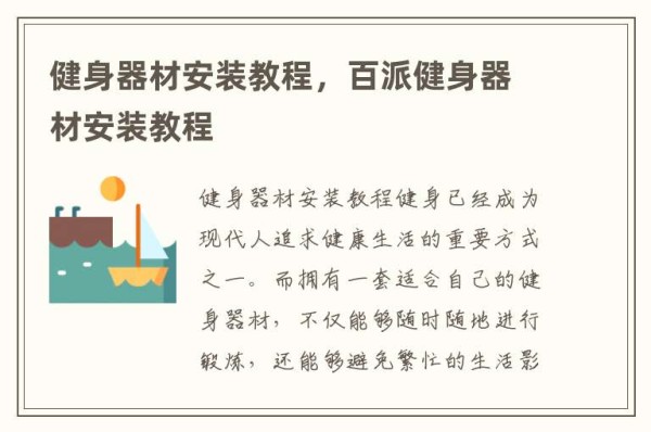 健身已经成为现代人追求健康生活的重要方式之一。而拥有一套适合自己的健身器材,不仅能够随时随地进行锻炼,还能够避免繁忙的生活影响到我们的健康。但是,很多人在购买健身器材后却不知道如何正确安装和使用。今天,在这篇文章中,我将向大家分享一些健身器材的安装教程,希望能够帮助大家更好地享受健身乐趣。