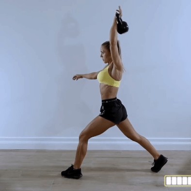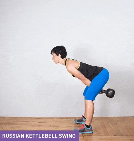 首先,我们的臀部大小肌群会率先发力,因为它们需要推动臀部和骨盆向前,协助我们把壶铃往前推。