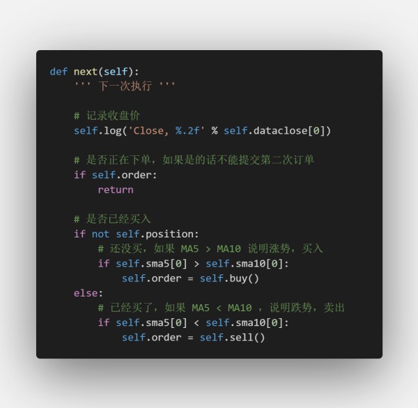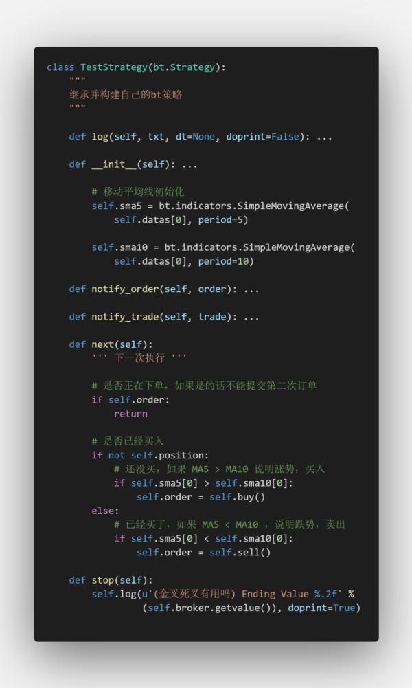 最重要的是,重写我们自己的交易策略,比如咱在开头提到的均线金叉死叉策略: