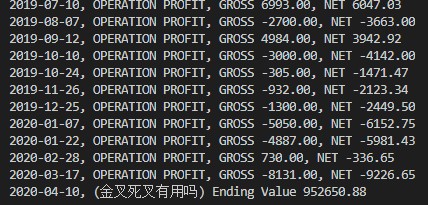 可以看到,我们初始资金是100万,每次交易100股,虽然偶尔有盈利,如果严格按照这个策略执行十年,最后会亏损5万元。当然,现实生活中,有时候情形好你肯定会加仓,情形差你会减仓,而这里暂时只是一个简单的买入卖出策略。
