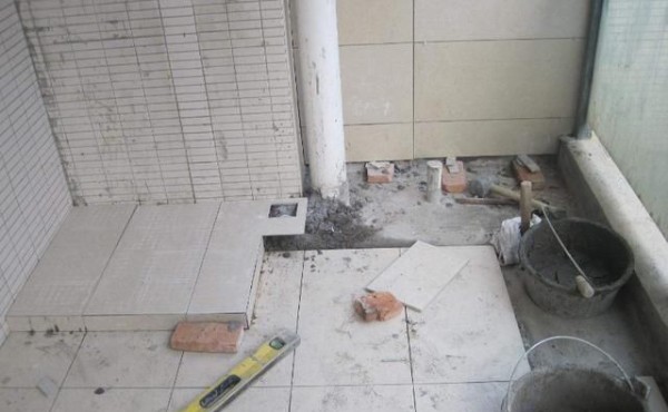 如果你需要更换浴室的瓷砖,在凿完原来的地砖后,你必须用水泥砂浆把地面夷平,然后做防水。否则,防水层厚度不均会引起渗漏。