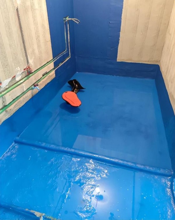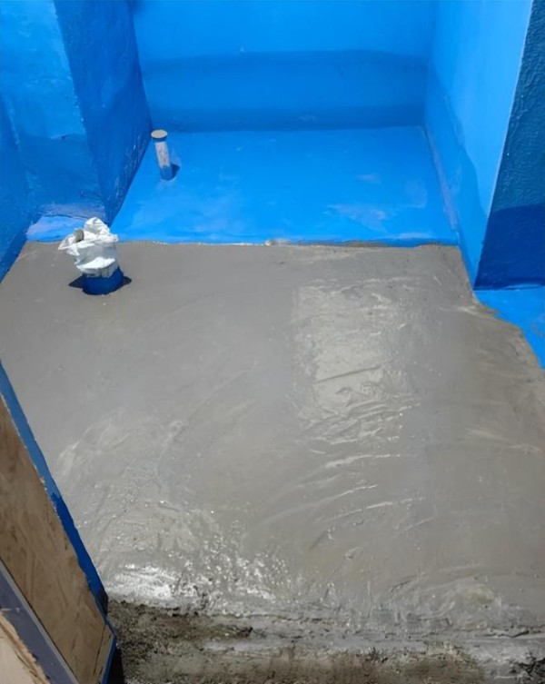 8、防水验收合格不能直接贴砖,瓦工师傅进场第一步,要用到水泥沙灰,在防水表层做一个保护层,等到水泥沙灰凝固以后,才能在上面施工。因为防水涂料属于高弹性防水涂料,材质较薄,极容易遭到后期施工破坏,对于防水层的成品保护至关重要,以免后期出现扯皮的问题。