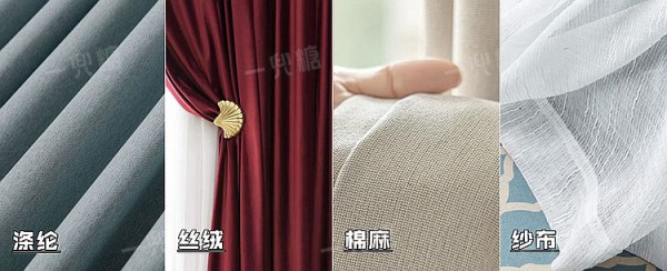 首先是窗帘的材质,市面上窗帘的材质可就太多了,像是常规的涤纶、丝绒、棉麻、纱布...