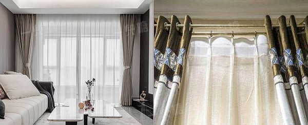 比如客厅不需要遮光,那么一层纱帘就足够了;