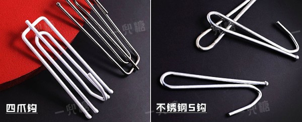 ×传统的四爪钩,虽然普遍,但是穿起来不顺手,用久了之后还容易松散,不建议选;