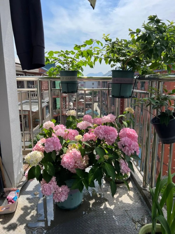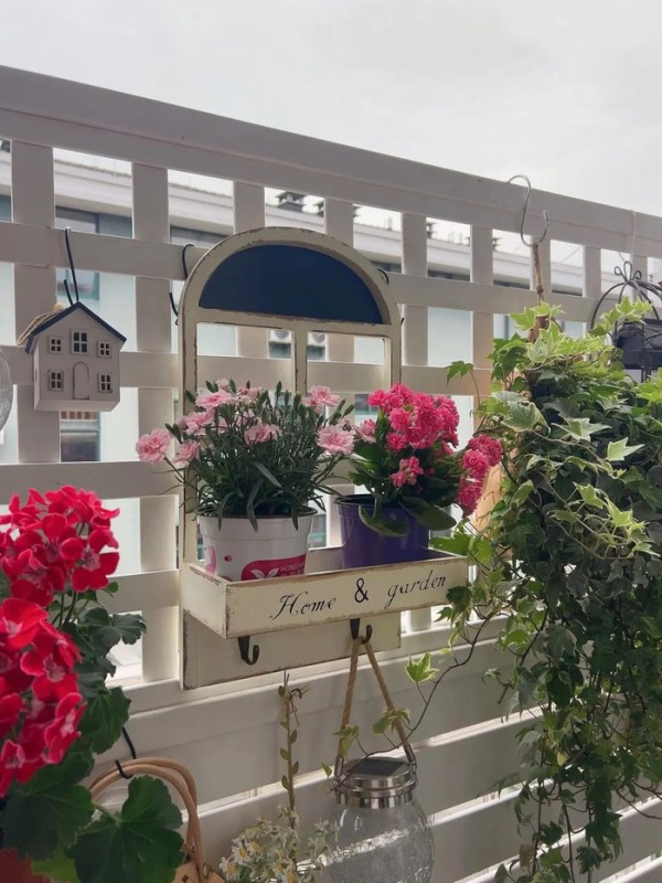 茶室对面的 4㎡空中花园同样精彩。阿姨在阳台栅栏上挂了挂式铁花架,各种绿植错落有致地摆放其上,浇水、打扫都轻松搞定。春天,繁花盛开,香气扑鼻;夏天,绿植葱郁,带来丝丝凉意;秋天,叶色斑斓,充满诗意;冬天,即便花朵凋零,也能欣赏绿植的姿态。在这里,养花不仅仅是爱好,更是一种生活态度,种的是心情,收获的是美好。