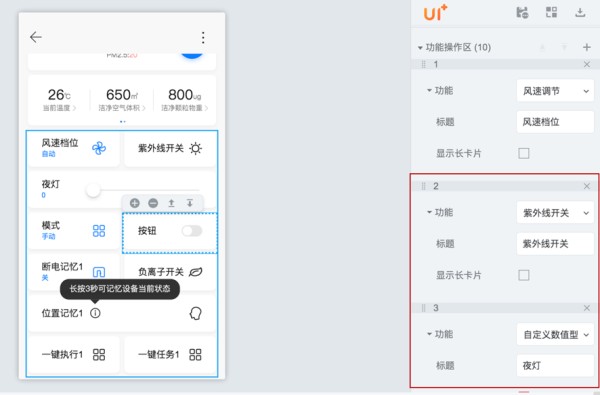 添加、删除功能 上下拖拽调整功能显示排序 选择该功能UI样式是否“长卡片”显示 修改标题名称图5 编辑功能区