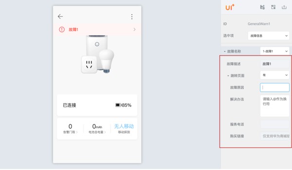 d.(仅适用于错误和故障服务)对错误和故障服务,进行以下配置:添加故障描述、描述故障原因、添加解决办法及服务电话、添加购买链接(仅支持华为商城链接)。
