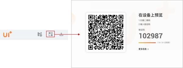 界面设计完成后,点击平台右上方,扫描生成的二维码并输入验证码(下图二维码仅为示例,请以实际为准),即可在手机上查看效果、体验操作。