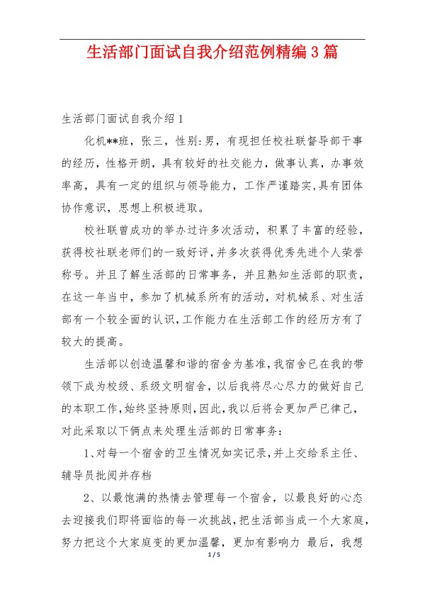 生活部门面试自我介绍(精选20篇)生活部门面试自我介绍范文(精选13篇)