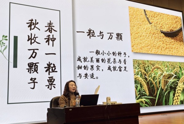 讲座现场,高平结合自身的教研成果,提出“写作是生命体验的自然流淌”这一观点。她以“菜园摘菜”为喻生动阐释:“优质写作素材不在远方,而在孩子每日经历的校园趣事、家庭对话、自然观察中,如同从自家菜园采摘茄子萝卜,新鲜且富足。”