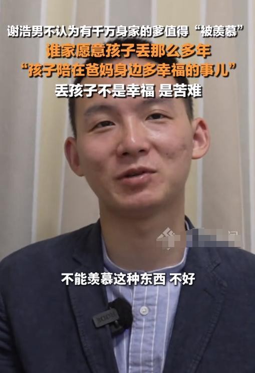 如果当初没被拐,谢浩男的生活会比今天强百倍,起码不用为了生活费发愁,所以他不埋怨养父母就已经仁至义尽了,更不要说什么感谢了。