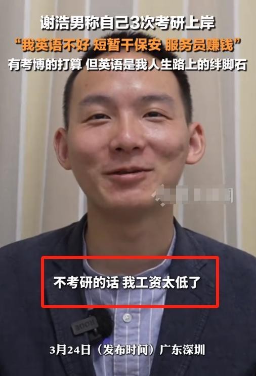 他说自己考研考了三次才上岸,为了赚生活费和学费,他也经常打工,像保安和服务员他都干过。