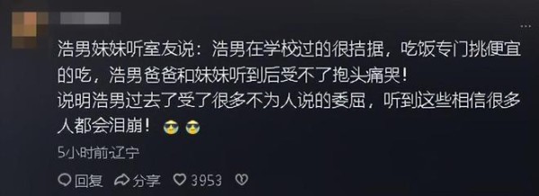 看到这里,相信大家也明白了,为何在谢浩男找回来后,父亲和大妹总是在镜头面前哭,因为他们心疼,心疼谢浩男曾经吃过那么多的苦,更心疼他不舍吃不舍穿,而考研也是为了能让自己的工资高一些。