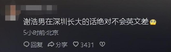 还有人说:“谢浩男在深圳长大的话绝对不会英文差。”
