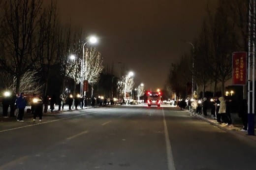 12月26日清晨,“此刻,正当行”考研送行活动拉开序幕。菏泽校区(分院)主干道上,四辆送考专车已整装待发。校区(分院)学生骨干及学生代表整齐的站在道路两侧,挥舞手中的手电筒为考研学子加油鼓劲,鼓励他们披荆斩棘、奋勇向前。