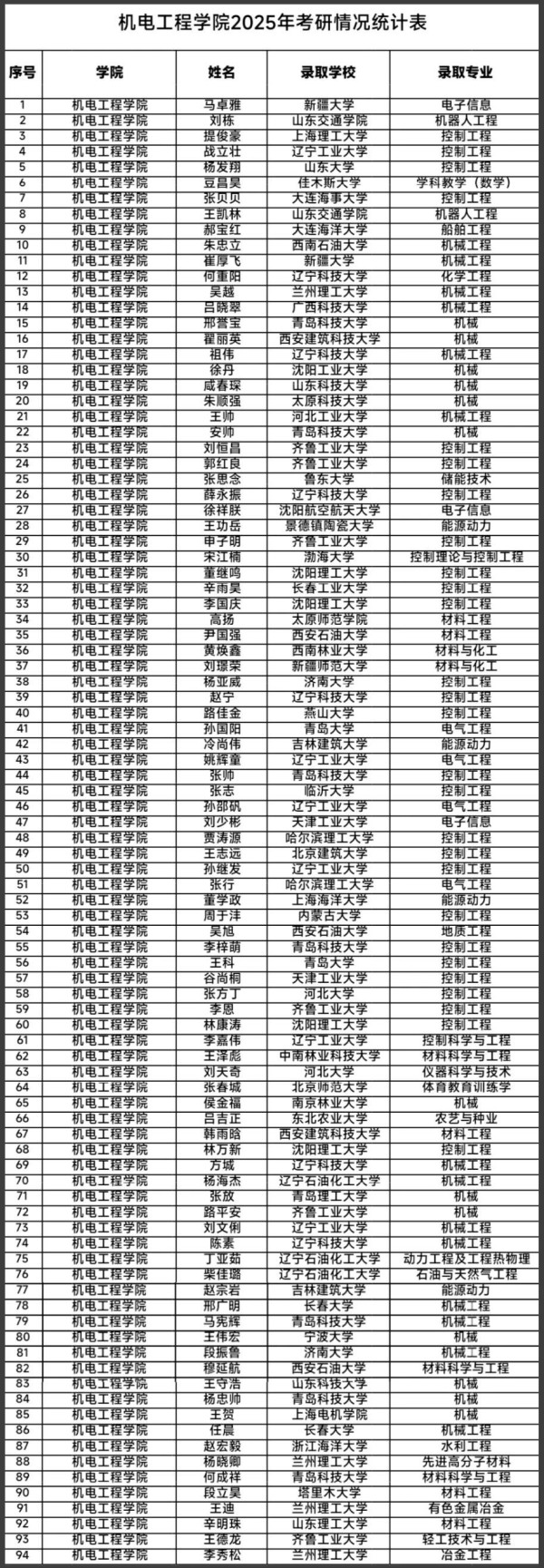 机电工程学院94人考研成功!2人圆梦985、6人登科211、6人斩获双一流!