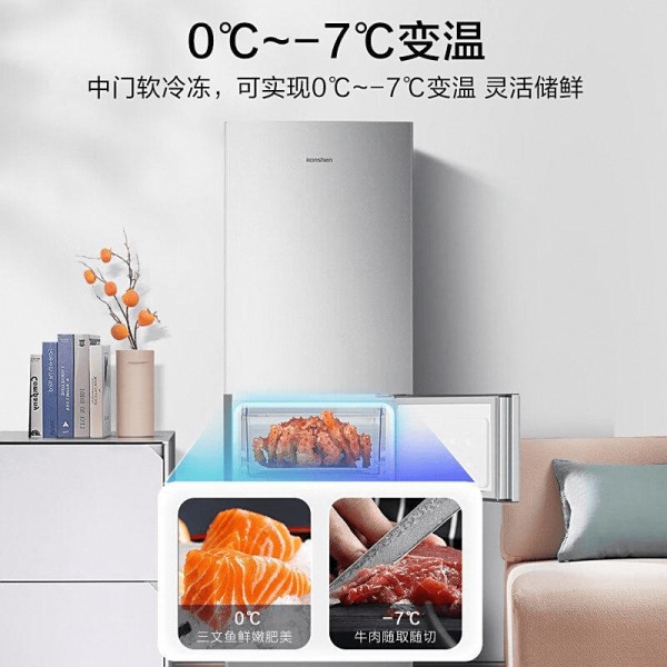 中门软冷冻设计:0℃~-7℃的变温范围,灵活满足各类食材存储需求,轻松应对美食备货。 216升大容量:提供足够的冷藏、冷冻空间,适合一家三口的日常使用,轻松存放新鲜食材。 节能低噪:日耗电量仅约0.52度,运行声音仅38分贝,为您创造安静舒适的居家环境。 三门独立分区:科学的多层冷藏设计,避免不同食材之间的味道交融,健康美味更持久。 外观纤巧:精致美观的设计占地少,无论是小户型还是大空间,都能完美融入家居风格。适合人群:家庭主妇、喜欢烹饪的人士及重视储鲜体验的用户,可以在这里找到存新鲜、低噪音与高效能的完美结合,让您的日常生活更加轻松与舒适。