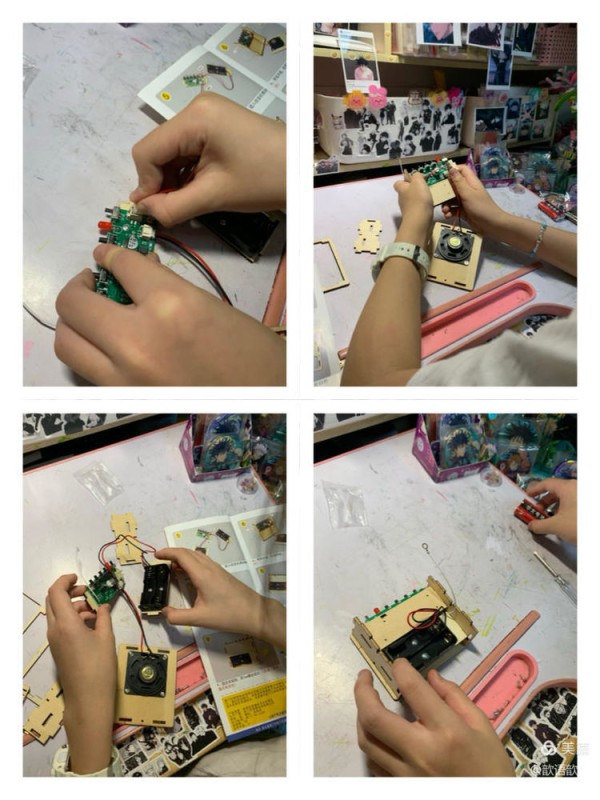 把喇叭、电子元件等按照说明书组装好,这个过程并不是一帆风顺的,由于安装每一个部位的螺丝长度不一样,没有仔细的衡量清楚,直接导致了返工。