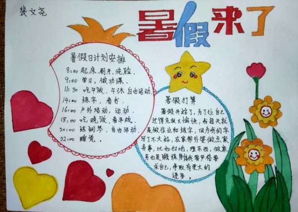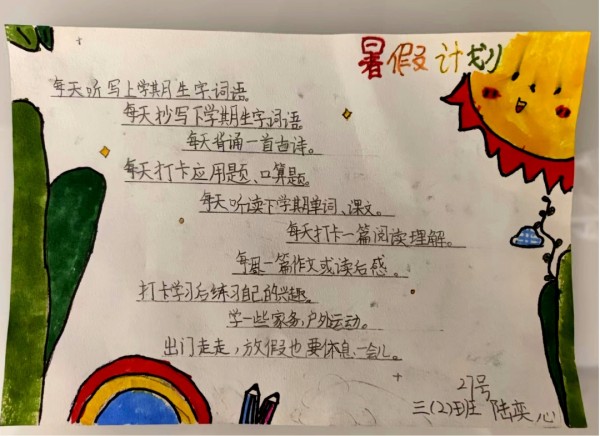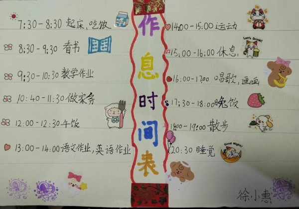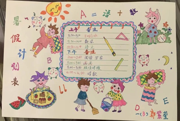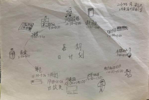 暑假已经如期而至,为了让学生们度过一个欢乐又有意义的假期,上外-黄浦外国语小学组织同学们自制暑期生活计划表,孩子们按照各自的喜好认真的完成时间表的制作,以此提醒自己假期里仍要保持良好的生活作息规律,张弛有度。一起来看看学生们用心制作,各式各样的暑期时间表吧。