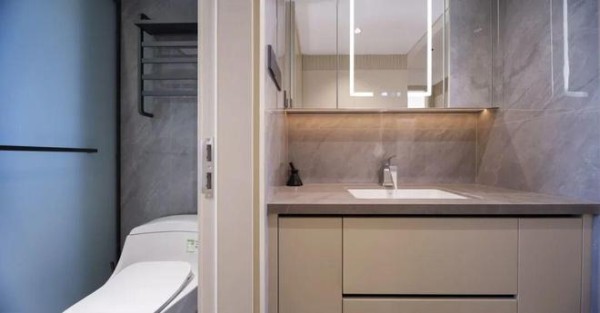 嵌入式镜柜/浴室柜:建议放弃底部留缝的独立浴室柜。将镜子与储物功能结合的嵌入式镜柜,能轻松收纳牙膏、牙刷、护肤品,关上门瞬间恢复整洁。浴室柜也可做成壁挂式并与墙面融合,底部悬空便于清洁,真正实现无死角。