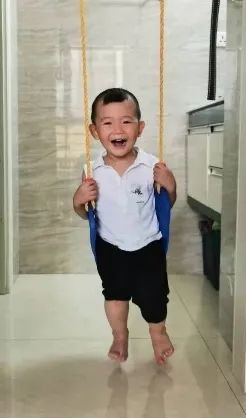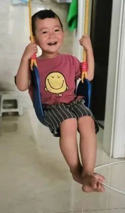 众所周知,游戏活动是婴儿生活内容的主要部分,在他们眼里,什么都可以成为一种游戏。若朴1岁多的时候,朋友送了个二手的秋千连带滑梯的玩具,放置在客厅。白天,我们去上班,奶奶经常会让孩子坐在秋千上。秋千的座椅上系一条绳子,奶奶一边拉绳子,一边念儿歌。孩子边笑边说“飞起来喽飞起来喽”。后来家里的玩具越来越多,玩具秋千就摆不下了。我们就在门框上放一根单杆,悬挂秋千。也不用多大的活动空间,随时都可以玩。有时搬张小板凳和孩子面对面,认认数字、汉字卡片。孩子对这种游戏是很有兴致的。在这个小游戏中,不仅锻炼了孩子的平衡能力,空间知觉、形象思维、数学概念等认知能力都会得到提高。这种近距离活动,不仅亲子面对面,而且眼脑合作、协调。如果家长善于掌握时机,引导得当,通过亲子游戏活动,运用在游戏活动中接触到的一切事物和材料,对孩子进行因势利导的教育,就能促进孩子在身体、生理和心理诸方面的有效发展。