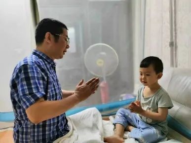 亲子游戏有益于家长与孩子之间的情感交流,密切亲子关系。我们夫妻俩是上班族,工作、学习、家务、社会活动都需要投入大量的时间和精力,一天到晚忙里忙外,根本没有时间和孩子玩,与孩子沟通很少,造成了亲子关系紧张。临睡前,孩子就会邀请他爸在床上玩一会儿拍手游戏。这是一种交往和沟通的重要手段,成了一种睡前仪式。我们尽量利用休闲时间,与孩子玩躲猫猫,在一起玩耍,增强亲子间的亲近感和亲密性,自然而然地流露着骨肉亲情,有助于形成亲子间安全依恋。安全依恋与游戏中获得的快乐体验,又有助于儿童人际交往兴趣的形成与发展,有助于儿童活泼开朗性格的形成。