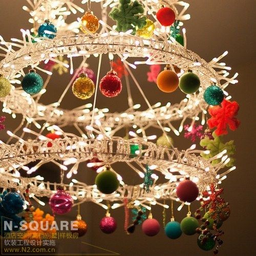 五彩缤纷的小球掉满用白色彩灯绕过的灯盘,可爱至极。