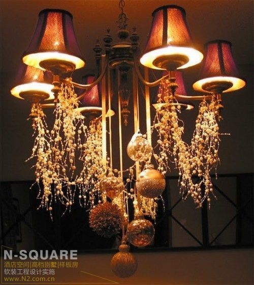 在每个灯罩下绑一个优雅的蝴蝶结,坠落的丝带为样板房设计添加浪漫的气氛。