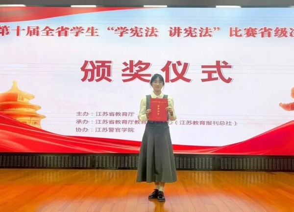 日前,由江苏省教育厅主办的第十届全省学生“学宪法 讲宪法”比赛决赛落下帷幕,扬州中学的余璟妍同学凭借出色的法治素养、扎实的演讲功底和稳定的临场发挥,荣获演讲比赛一等奖。