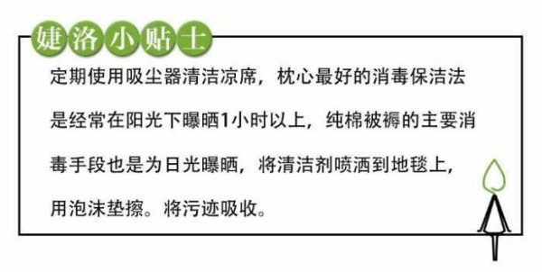 凉席很容易隐藏看不见的灰尘,清洁时要注意:
