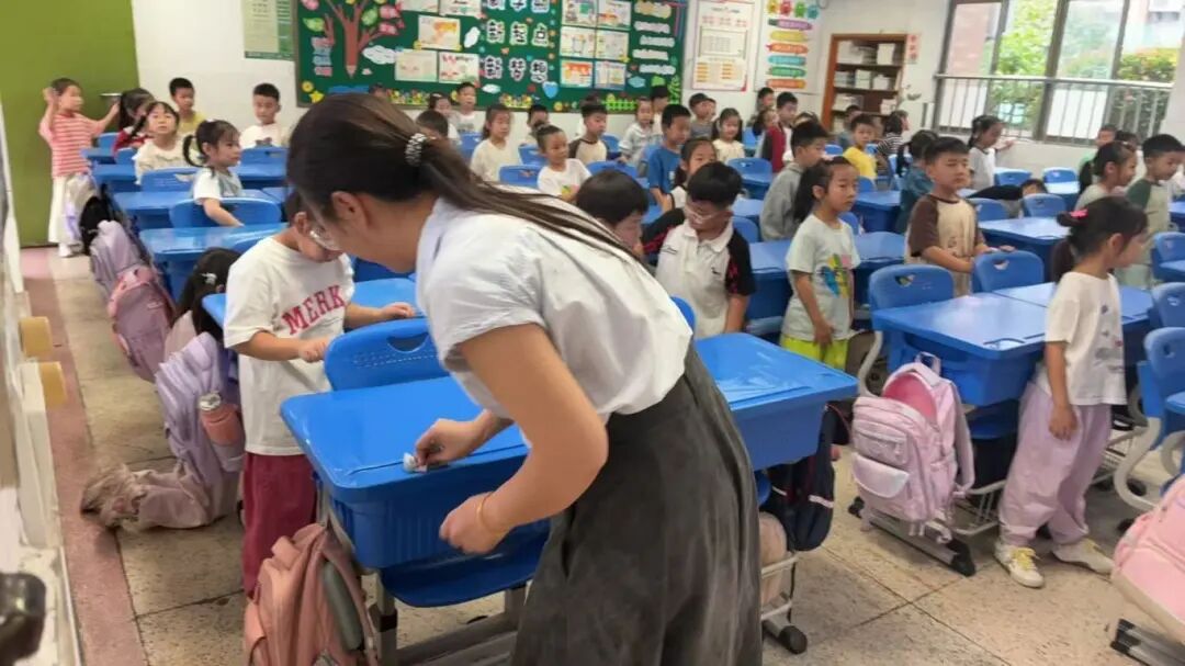 美化教室环境面对教室桌面污迹与电风扇积灰等问题,一(6)班、一(7)班、一(9)班的班主任、老师和家长迅速行动,带头清理。在他们的示范引领下,全年级各班纷纷加入。