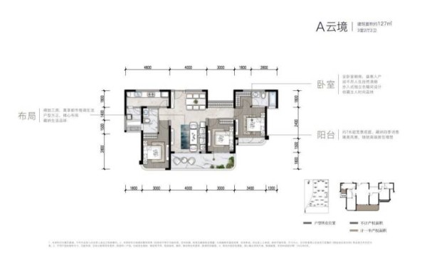 高层127㎡户型,套三双卫、功能齐全,布局合理、动静分区。客厅为竖横厅结合设计,超大观景阳台,景观视野优越。
