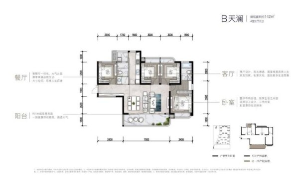 高层142㎡套四双卫套四双卫,南北通透,本户型可以满足三口之家、三代同堂等多种生活场景,阔景横厅设计,带超大景观阳台,给业主尊贵生活体验。