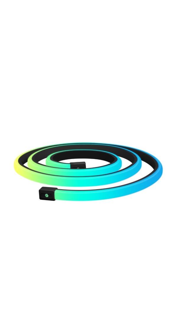 分段式流光幻彩技术灯效,单灯带内置28个/42个控光单元,可自定义动态光效和呈现多色渐变效果。配合反向发光设计消除传统LED光斑,呈现柔和光影效果。其柔性霓虹硅胶材料,支持自由裁切至1米/2米,精准适配各类桌沿曲面。