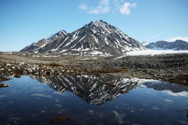 【挪威斯瓦尔巴群岛东洛文冰川附近雪山已经开始融化】