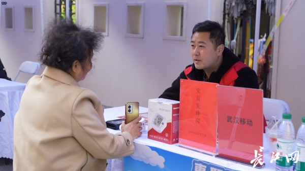 武汉移动工作人员耐心解答居民各类通信业务疑问。记者陈峰 摄