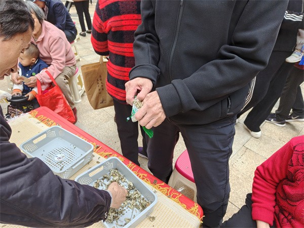 活动现场,艾草香包手作区里,孩子与爷爷奶奶的身影格外动人。稚嫩的小手与布满皱纹的手一同拿起针线、填充艾草,一个个小巧精致的香包在亲子协作中逐渐成型。这不仅是传统民俗的生动实践,更将晚辈的孝心“缝”进了一针一线里。百余组家庭完成的香包,成了重阳节最具心意的礼物,也成为连接邻里情、党群情的暖心纽带。