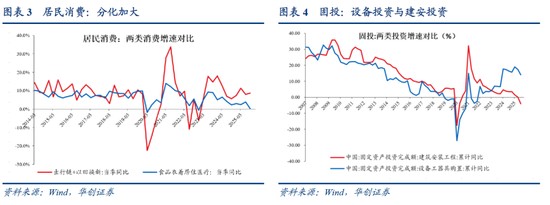 1、首先,从经济增长的角度,经济结构出现了较多分化。包括供给强于需求、外需强于内需、居民消费中“出行以及以旧换新链条”强于“食品衣着等必选消费链”、固投中偏新经济的设备投资强于偏旧经济的建安投资。