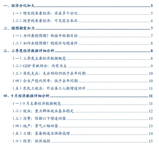 张瑜:经济分化加大,稳预期需加力——9月经济数据点评