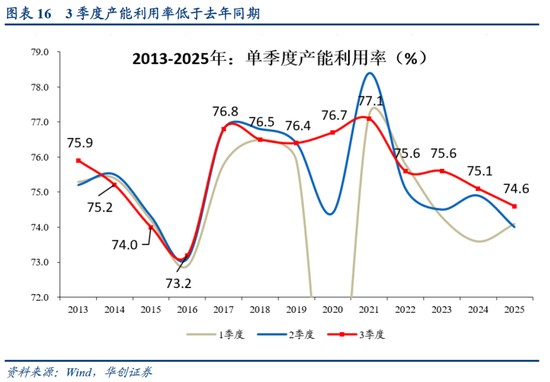 产能利用率方面,三季度,全国规模以上工业产能利用率为74.6%,比上年同期下降0.5个百分点。与上半年相比,产能利用率降幅有所扩大,上半年产能利用率为74%,比上年同期下降0.3个百分点。