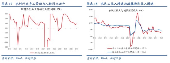 农民工方面,三季度末,外出务工农村劳动力总量19187万人,同比增长0.9%,二季度为0.7%。月均收入方面,三季度外出务工劳动力月均收入同比增速为2.4%,前值为3.0%。