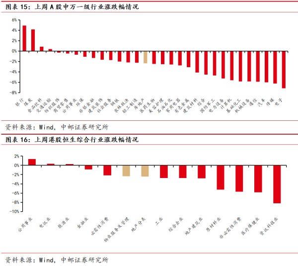 从行业排名来看,上周A股房地产在31个申万一级行业中排名第15,港股地产分类、物业服务及管理在14个恒生综合行业中分别排名第7、第6。