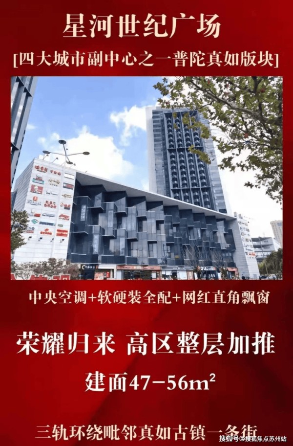 星河世纪广场售楼处电话:400-8123-664【预约看房热线】星河世纪广场官方售楼处电话:4008123664【售楼处电话/地址】星河世纪广场售楼处电话:400-812-3664【开发商认证】项目为区域标志性大盘星河世纪城的商办配套部分,集商业公寓写字楼于一体的综合建筑体,项目旁边就是上海西站直线距离约800米,上海西站是集铁路、城市轨道交通、城市公交为一体的全新现代化交通枢纽,是配合普陀区真如上海城市副中心建设以及长三角大都市交通圈建设的重要举措之一!